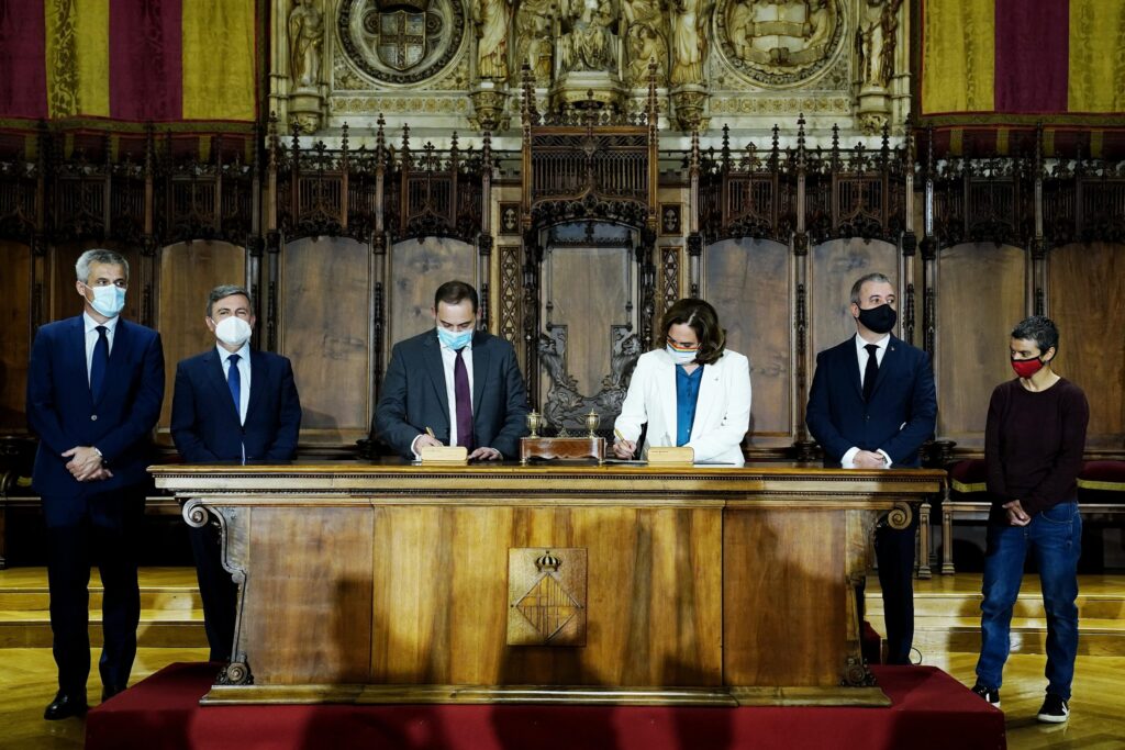 La alcaldesa Ada Colau y el ministro de Transporte, Movilidad y Agenda Urbana, José Luis Ábalos, han firmado un protocolo inédito en materia de vivienda. Es la primera vez que un ayuntamiento pacta con el ministerio el acceso directo y a fondo perdido de dinero público procedente del Estado para la promoción de vivienda pública de alquiler, dentro del Plan 20.000 viviendas. La aportación del Estado será de 72 millones de euros.