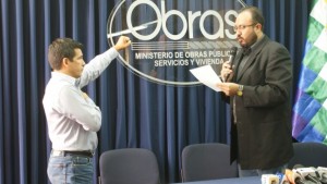 El ministro boliviano de Obras Públicas, Servicios y Vivienda, Milton Claros, dio posesión al nuevo director de...