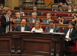 La consejera de Gobernación, Administraciones Públicas y Vivienda, Meritxell Borràs, y el secretario de Vivienda y Mejora...
