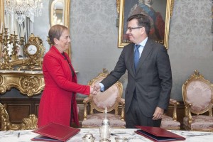 La presidenta del Gobierno de Navarra, Uxue Barkos, y el vicepresidente del Banco Europeo de Inversiones (BEI),...