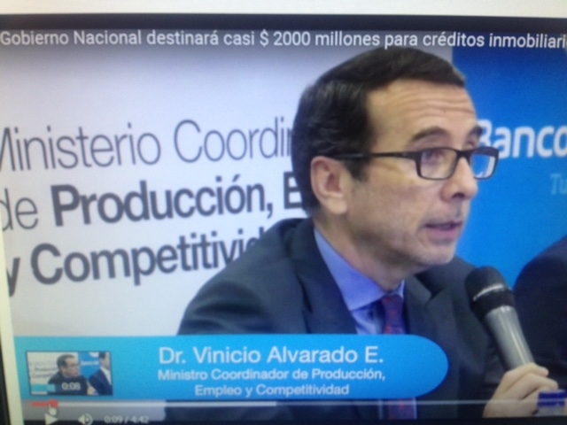 Ecuador dispone de más de 1.900 millones de dólares en crédito para vivienda, principalmente de interés social, de los que 320 millones correponden a la banca privada, según anunció el ministro coordinador de Producción, Empleo y Competitividad, Vinicio Alvarado.