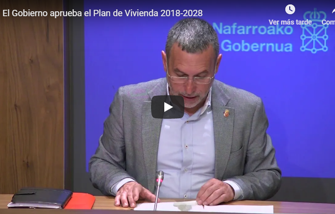 El Gobierno de Navarra ha aprobado el Plan de Vivienda 2018-2028 que desarrolla, entre otras aspectos, el derecho subjetivo a la vivienda y prevé destinar a diferentes acciones 350 millones, el equivalente a 130 euros por persona, frente a los 10/12 que se gastan en el resto de España, según los datos ofrecidos por el ejecutivo de Uxue Barkos.