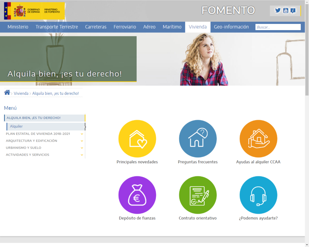 El Ministerio de Fomento pone en servicio un sitio web a disposición de la ciudadanía con información detallada y accesible para facilitar el desarrollo de la relación contractual de arrendamiento de vivienda. La herramienta facilita información detallada y accesible sobre el arrendamiento de vivienda y acerca de las principales novedades introducidas por el Real Decreto-Ley 7/2019.