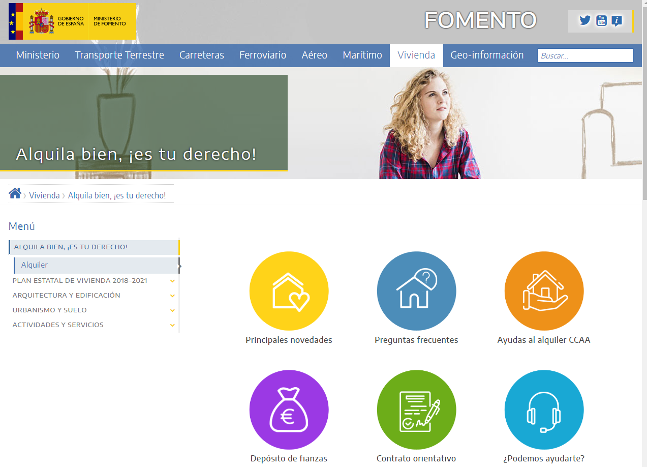 El Ministerio de Fomento pone en servicio un sitio web a disposición de la ciudadanía con información detallada y accesible para facilitar el desarrollo de la relación contractual de arrendamiento de vivienda. La herramienta facilita información detallada y accesible sobre el arrendamiento de vivienda y acerca de las principales novedades introducidas por el Real Decreto-Ley 7/2019.