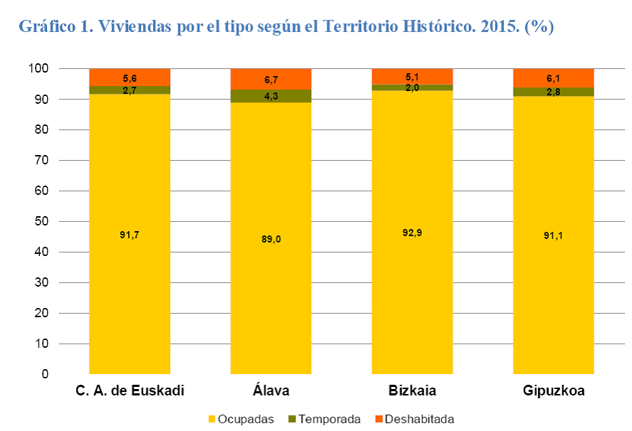La Estadística de Vivienda Vacía 2015, elaborada por el Departamento de Empleo y Políticas Sociales del Gobierno Vasco, revela que en el año 2015 existían en la Comunidad Autónoma de Euskadi (CAE) 86.325 viviendas vacías, un 8, 3% del total de viviendas.