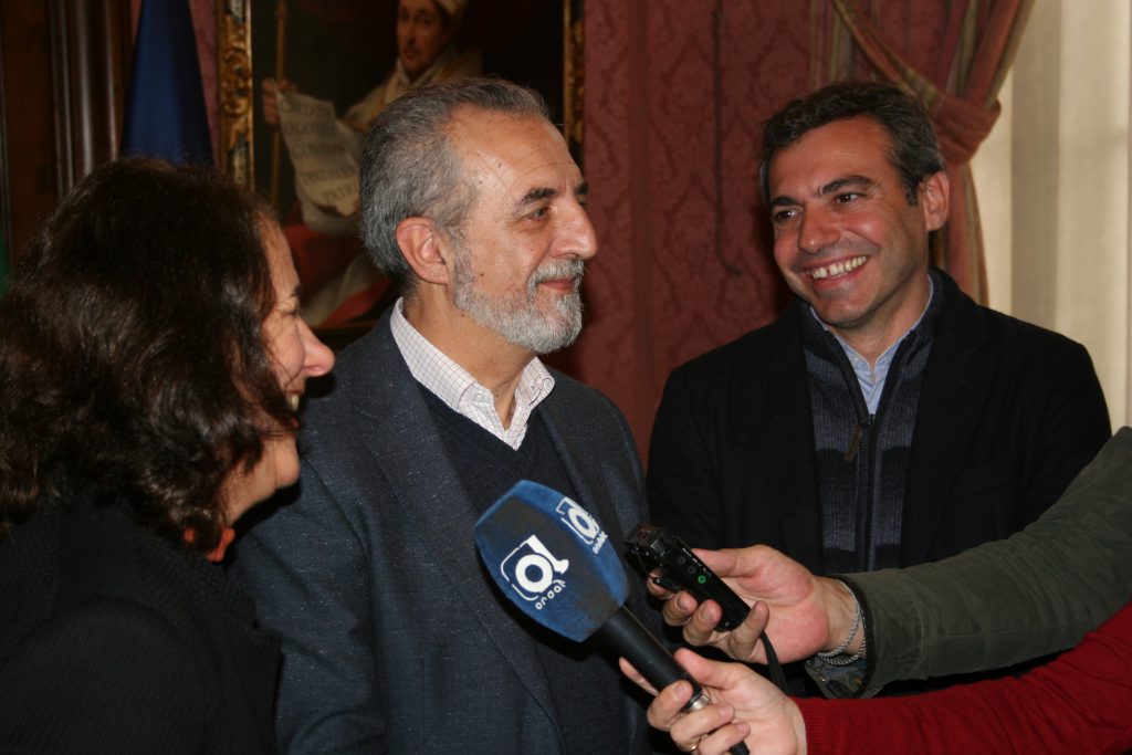 Juan Manuel Flores y Felipe Castro atendiendo a los medios de comunicación.