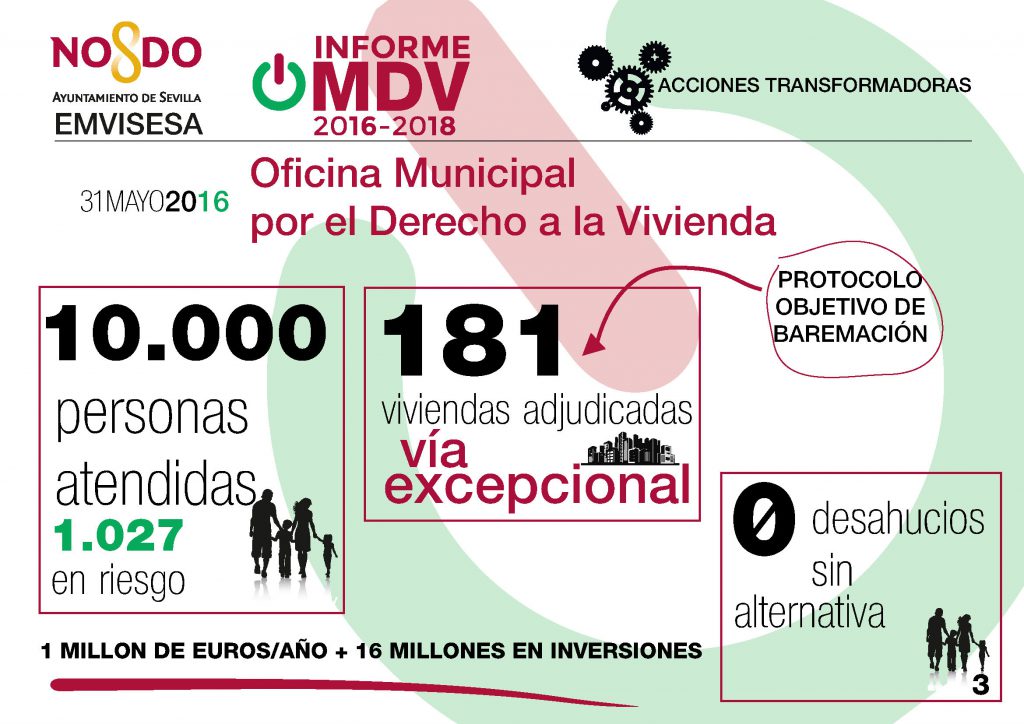 Mil de las diez mil personas atendidas en los tres años y medio de funcionamiento de la Oficina Municipal por el Derecho a la Vivienda, puesta en marcha por el Ayuntamiento de Sevilla, se encontraban en riesgo de perder su hogar.